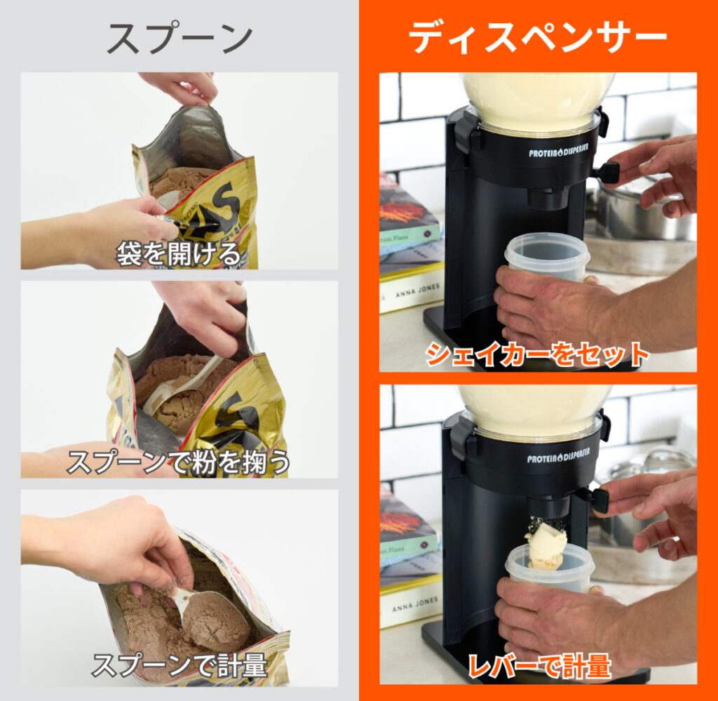 スプーン計量とディスペンサー計量、何が違う?プロテインの量り方を比較