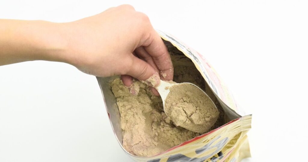プロテインパウダーはタンパク質の塊です。水分や油分が混入すると、劣化のスピードが上がります。雑菌の繁殖条件も整いやすくなる。