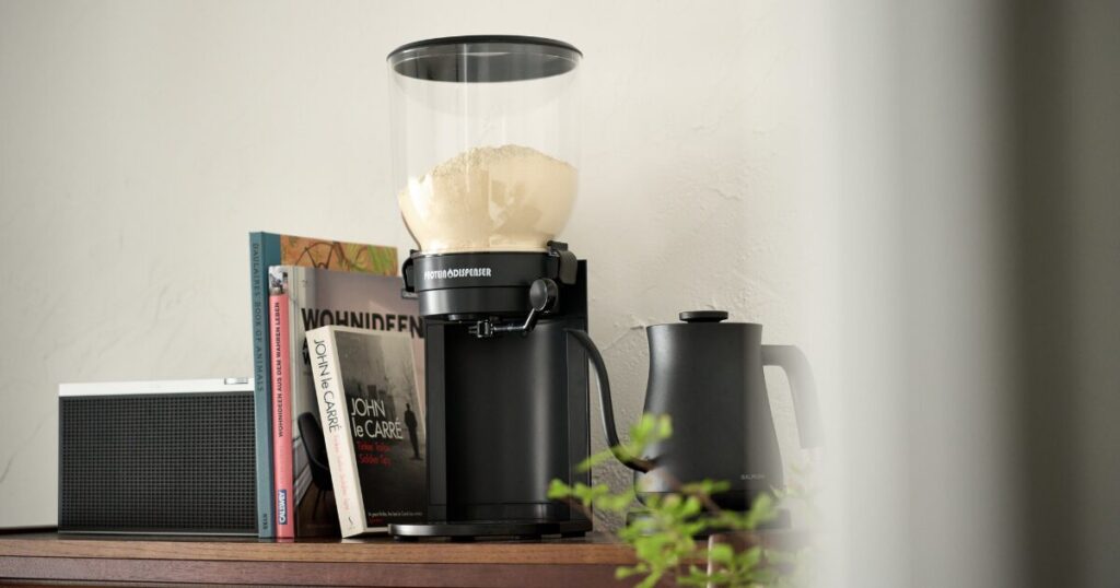 プロテインディスペンサーの開発経緯について詳しくは、開発ストーリー前編・後編をご覧ください。計量機構の技術的な裏側は19回の試作で辿り着いた計量機構で詳しく紹介しています。