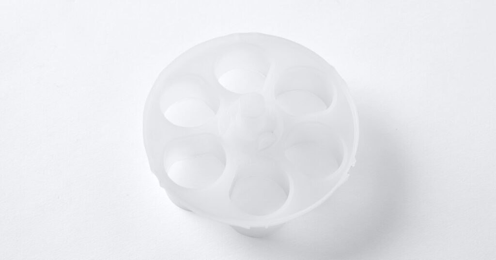 また、当初は計量部にPP(ポリプロピレン)を使う予定でしたが、成形品にしてから強度が不足していることがわかり、POMに変更しています。